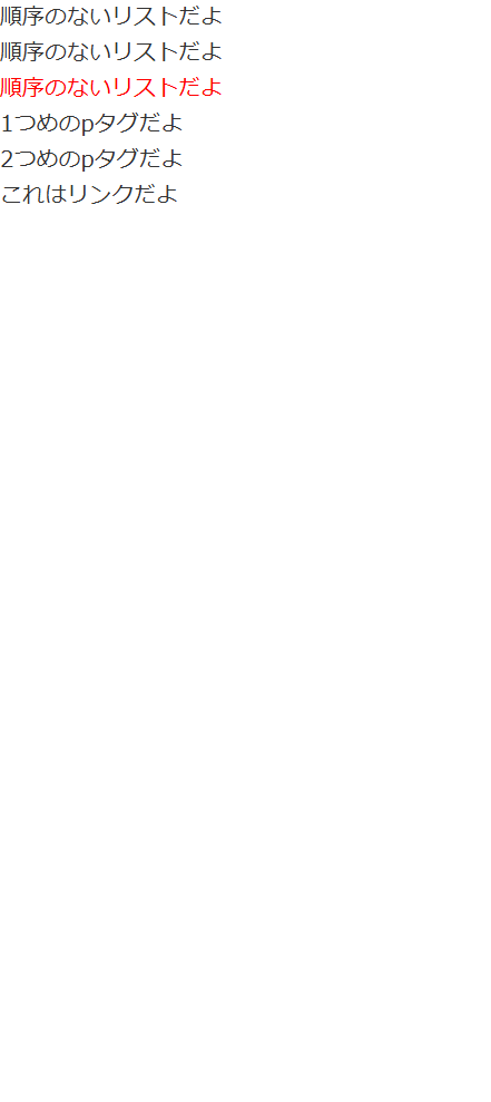 li:last-child { ⇐最後のliタグすべてが赤色になる。※どこの中にいるかは関係ない。
