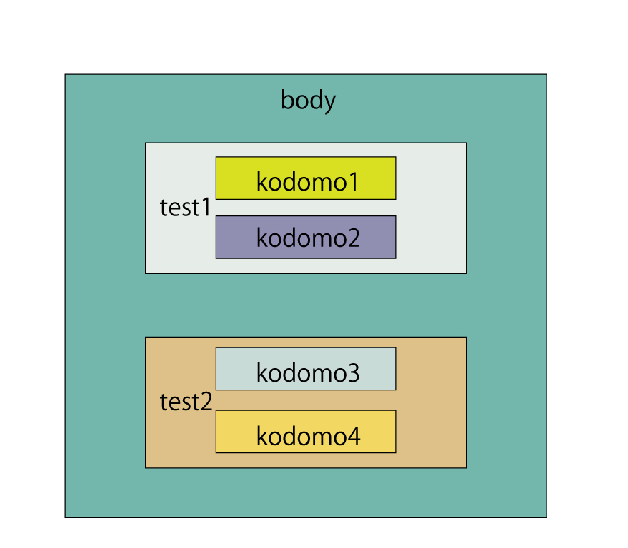 kodomo1~4はbodyにとって孫ではあるが、kodomo1と同じ階層にいるのはkodomo2だけ